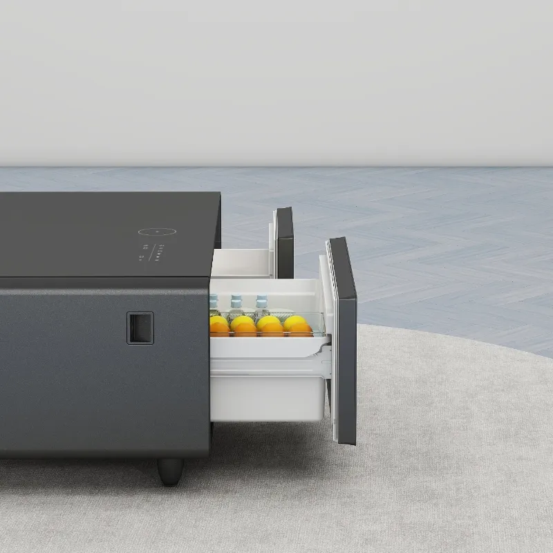 Exclusivité en France ! Cette table basse connectée en verre trempé redéfinit l’élégance et la fonctionnalité. Avec son réfrigérateur intégré et ses enceintes Bluetooth 5.0, elle combine design et innovations pratiques pour un salon unique.